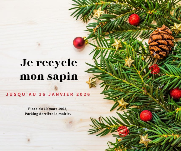 [SAPIN DE NOËL] Pensez à déposer votre sapin ! Vous n’avez pas encore retiré votre sapin de Noël Comme chaque année, un point de collecte est à votre disposition sur le parking derrière la mairie, jusqu’au vendredi 16 janvier.