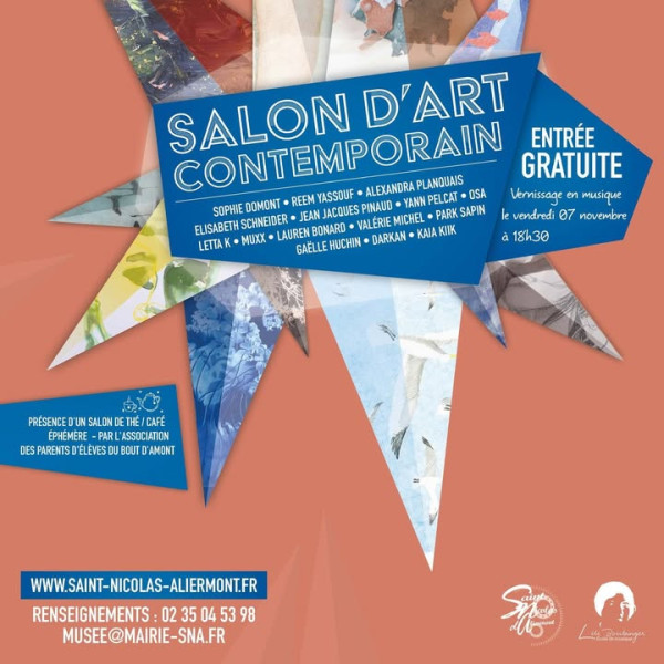 [ART] Le Salon d’art contemporain fait son grand retour à Saint-Nicolas-d’Aliermont ! Du 4 au 11 novembre, venez découvrir une explosion de créativité à l’Espace des 4 Vents Graphite ✏️, encre de Chine 🖋️, huile 🎨, pastel 🖌️, photo 📸, laine 🧶…👉 Un mélange de styles et de talents à ne pas manquer !🕓 Horaires :> Semaine : 14h30 à 17h> Week-end & jour férié : 14h30 à 18h📍 Espace des 4 Vents – Saint-Nicolas-d’AliermontEntrée libre et inspiration garantie 💫#ArtContemporain #ExpoSaintNicolas #Culture #ArtistesLocaux #SaintNicolasdAliermont